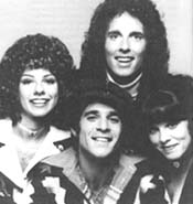 | Kaptain Kool and the Kongs - Um, maybe I'm wrong, but is having a band name that abbreviates to KKK a good thing? Anyway, this group was created by the Krofft brothers as the hosts of the Saturday morning Krofft Supershow (1976-1978). In the words of Sid Krofft, " ... a group we just put together out of actors who could sort of sing." After two years, they got replaced by the Bay City Rollers. That's show biz! Michael Lembeck was the Fonzie-esque Kaptain Kool, Debra Klinger was Superchick, Michael McMeel was Turkey and Louise DuArt was Nashville. They had a 1978 album on Epic. There was a fifth member, Flatbush (Bert Sommer) but he was only in the first season and may have been pete-bested. |