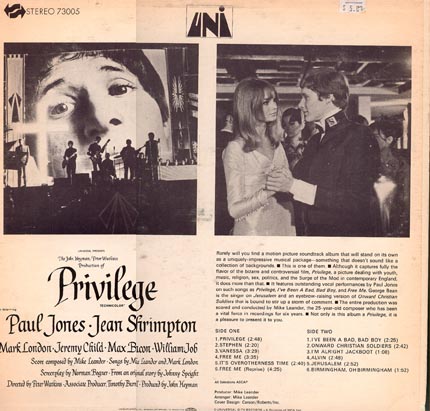 Sharks, The - Or is it The Sparks? It's hard to read the number six artist on the top ten board in the record shop scene in the 1971 classic, A Clockwork Orange. The song title is "Switch Me On." Anthony Burgess' original novel had even more bands in it, check the miscellaneous page. See also The Blow Goes, Bread Brothers, Comic Strips, Cyclops, Goggly Gogol, The Heaven Seventeen, The Humpers, The Legend, Johnny Zhivago.